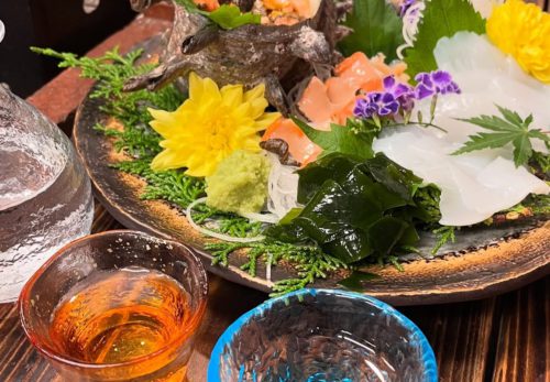 湯河原で炭火焼き小屋をやってます❣️沖水産です️️【サザエとアオリイカのお刺身】です️今回…